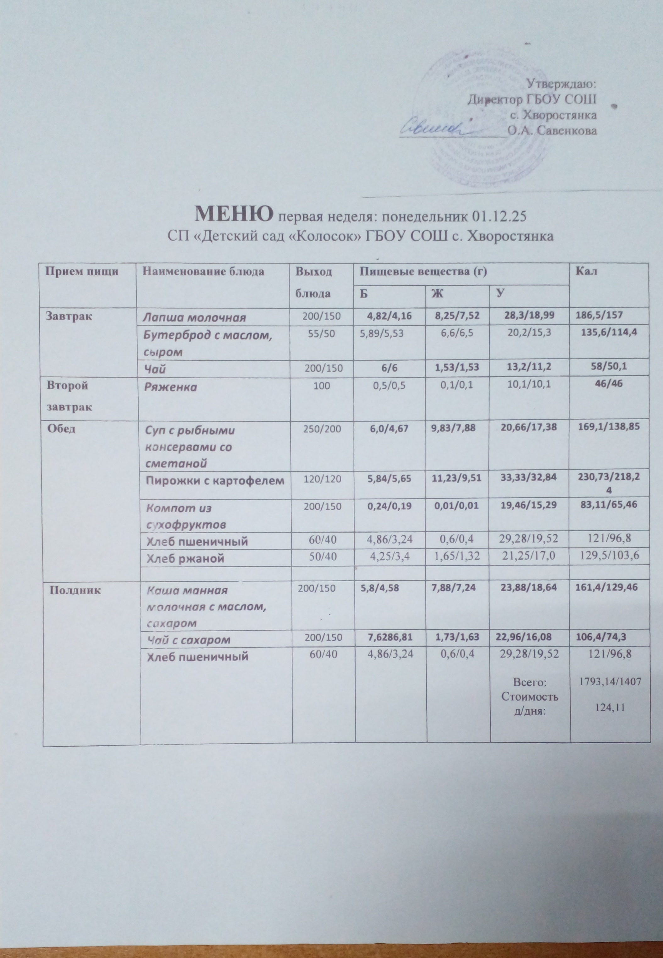 В 2025-2026 учебном году в СП ГБОУ СОШ с.Хворостянка «Детский сад «Колосок» воспитанники всех возрастных групп обеспечиваются горячим питанием.
