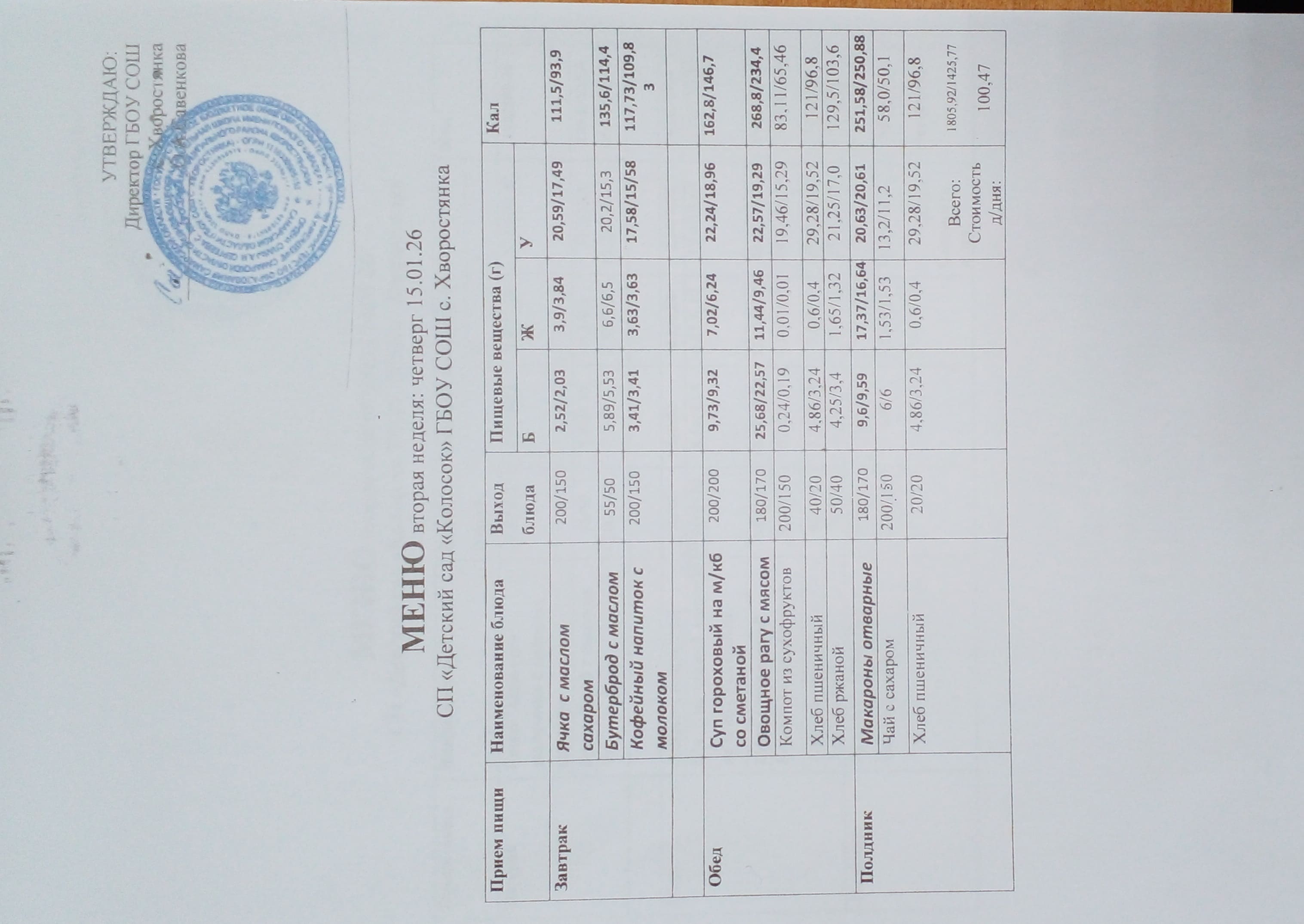 Положение об организации питания воспитанников СП «Детский сад «Колосок» ГБОУ СОШ с.Хворостянка